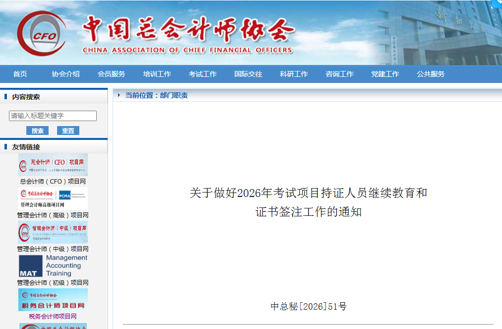 根据中国总会计师协会(以下简称中总协)各考试项目证书签注管理办法的相关规定,持证人员自取得证书的次年起,必须按年度参加继续教育,并定期完成证书签注。